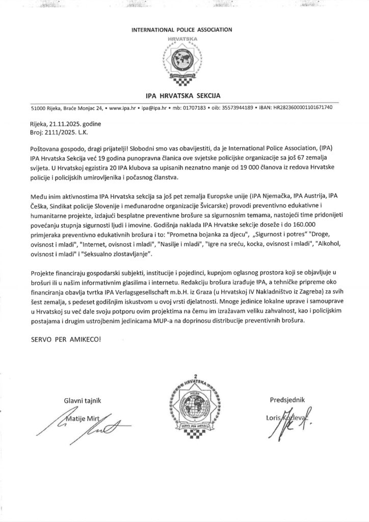 Izvješćujemo Vas da IPA Hrvatska Sekcija sa poslovnim partnerom IV Nakladništvom provodi aktivnosti na realizaciji preventivno edukativnog projekta Dječja sigurnosna bojanka Mali detektiv indeks 807 PGŽ.